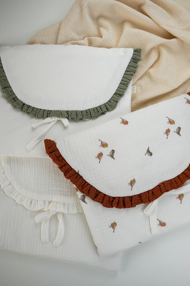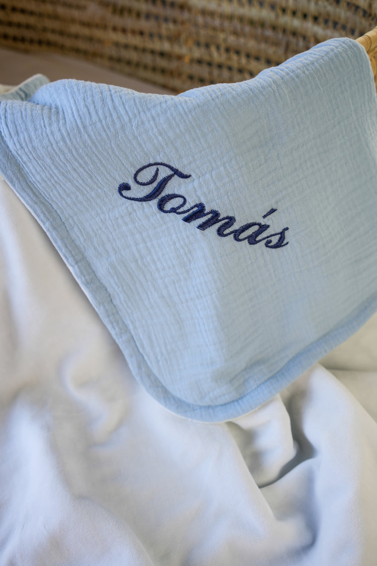 A nossa coleção exclusiva com musselinas, 100% algodão, personalizáveis com o nome do bebé. Produzida em Portugal.