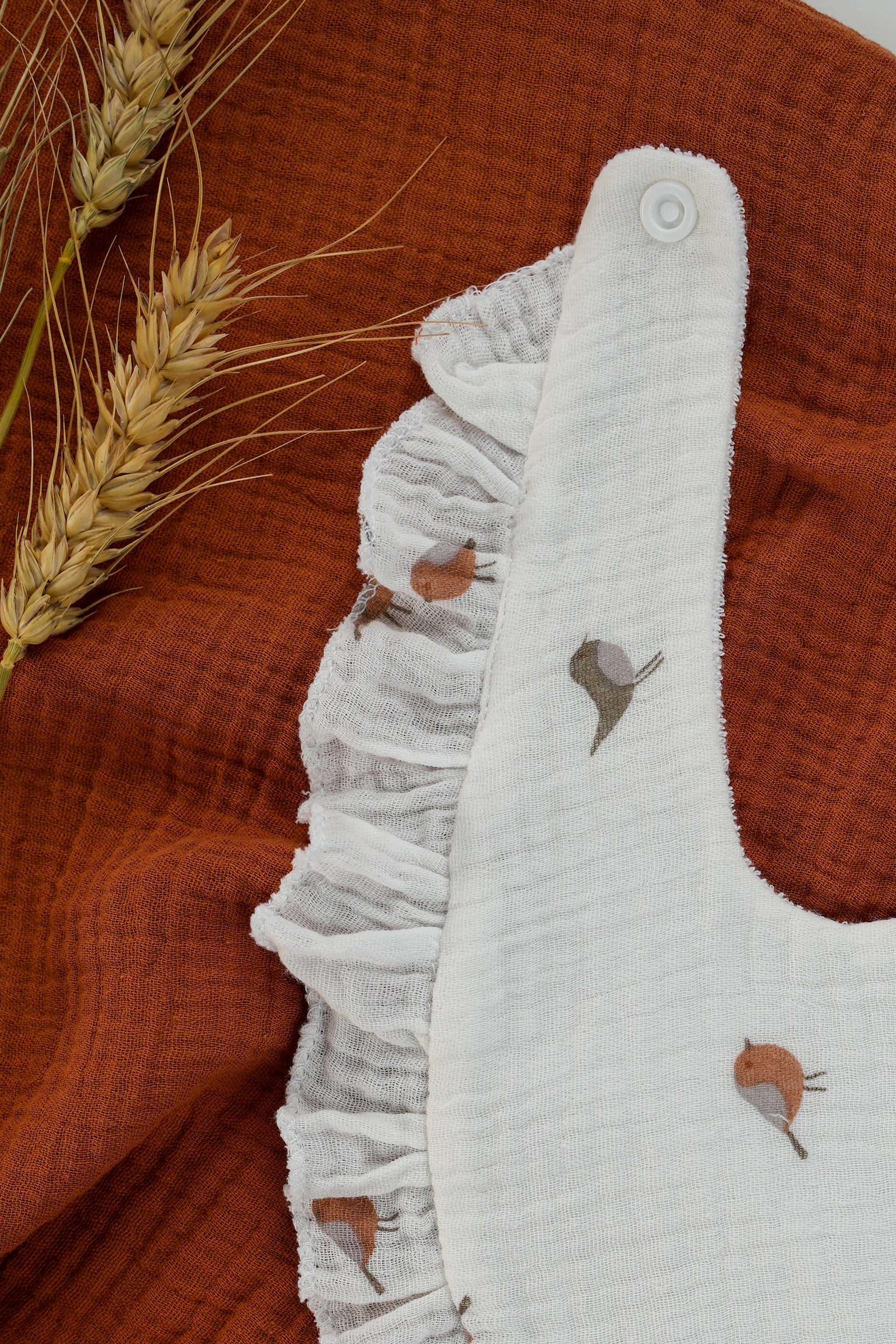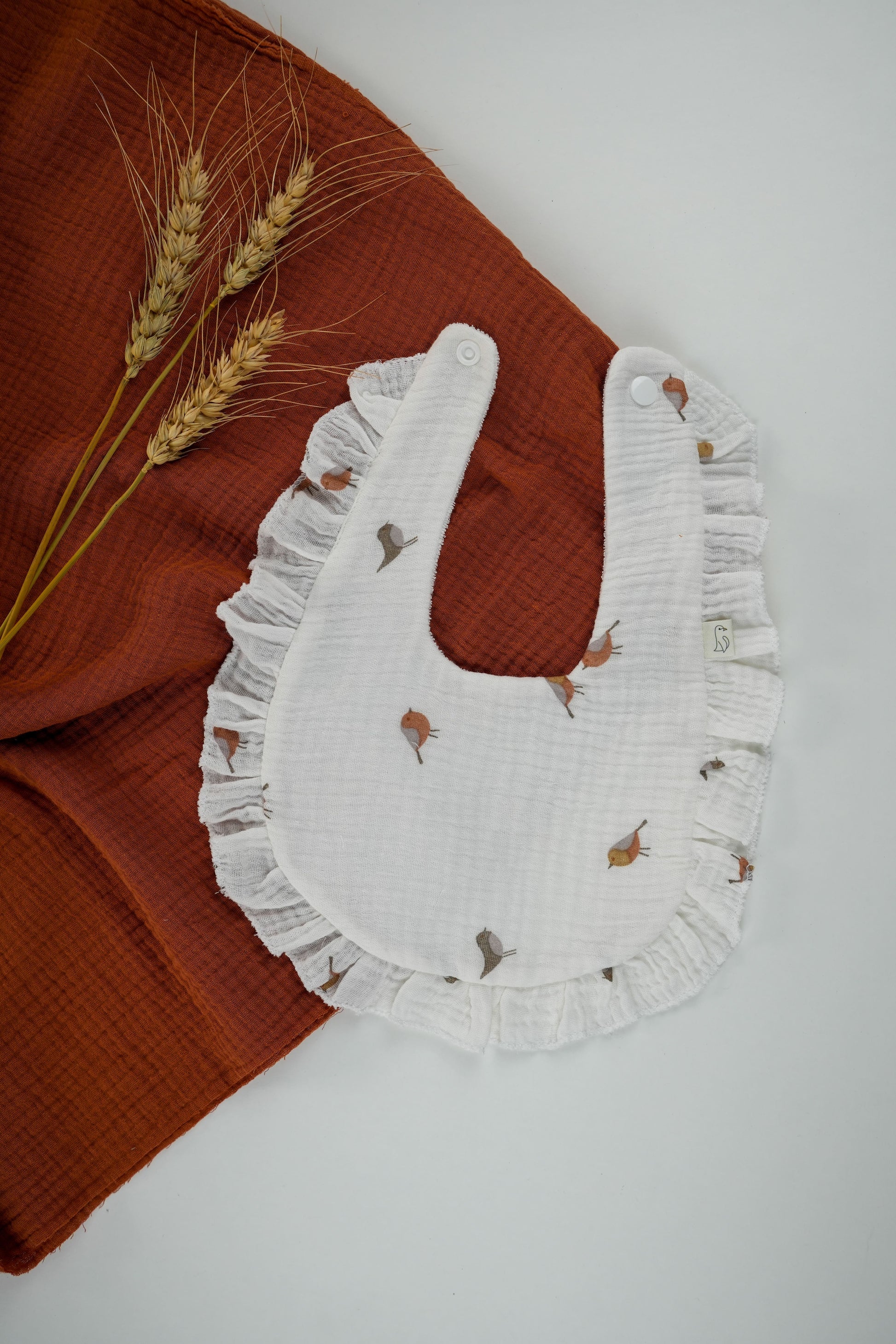 Um essencial prático e delicado para o enxoval, perfeito para usar durante as refeições ou quando o bebé se baba muito.