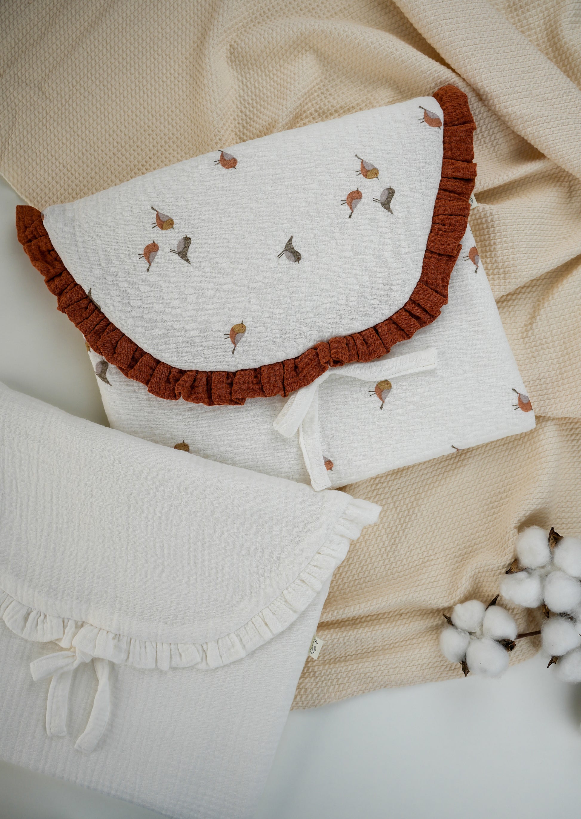 Trabalhamos apenas com materiais de qualidade, sempre a pensar no conforto, na segurança e na delicadeza da pele do bebé. Acreditamos que o bem-estar começa nos pequenos detalhes — e é por isso que cada peça conta uma história.